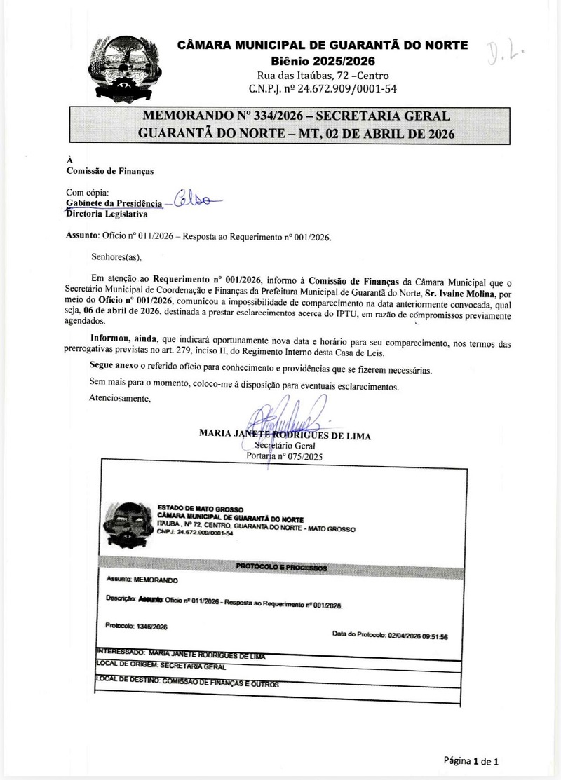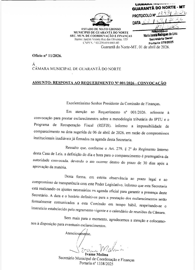 A população de Guarantã do Norte segue sem respostas claras sobre o polêmico aumento do IPTU. O que já era motivo de indignação popular ganhou novos contornos nesta semana: o Secretário Municipal de Coordenação e Finanças, Ivane Molina, simplesmente informou que não irá comparecer à convocação da Câmara Municipal na data previamente marcada.